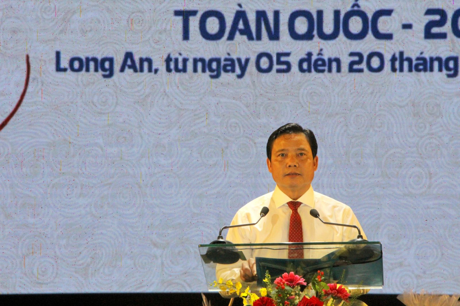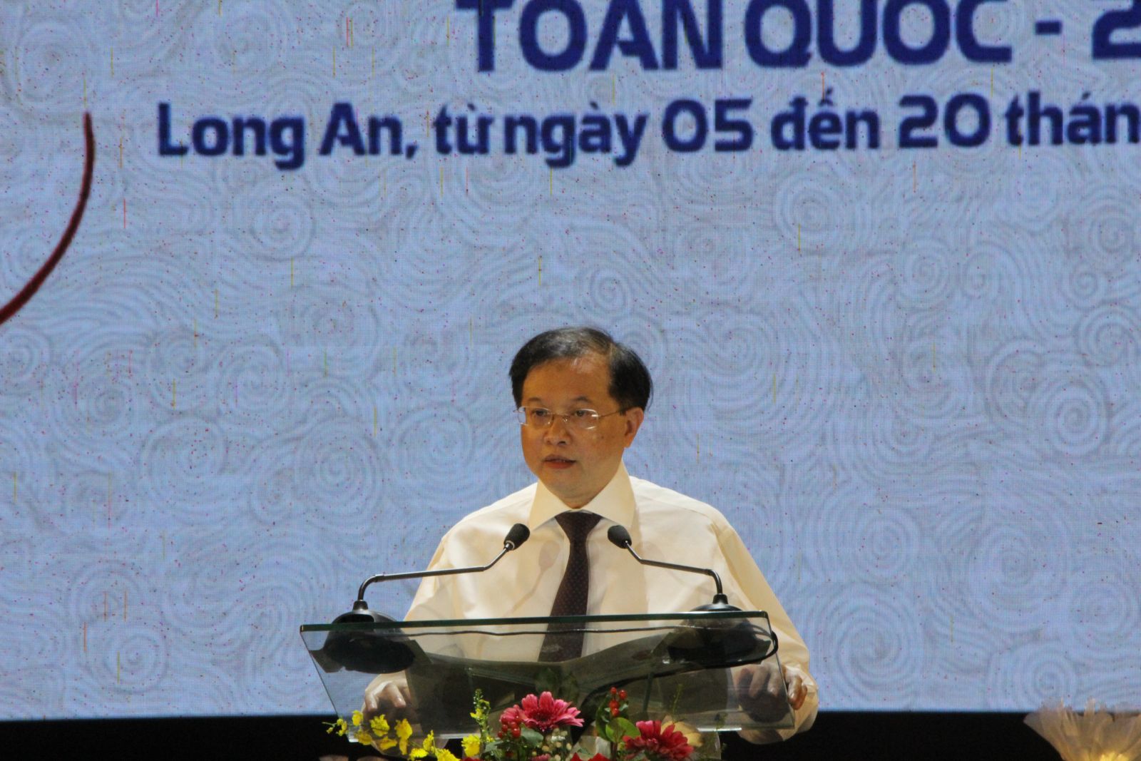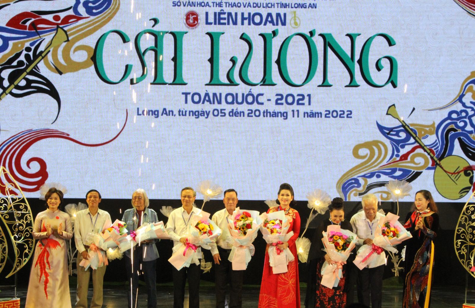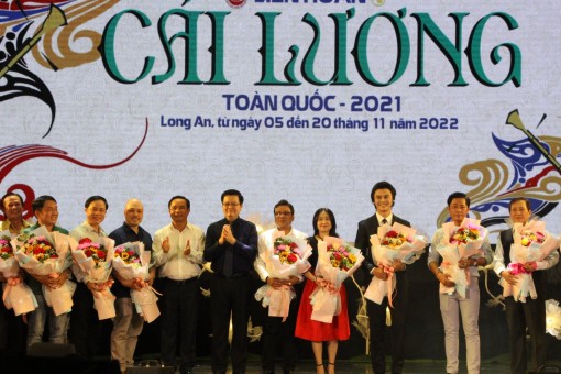 On the evening of November 5, the 2021 National Cai Luong Festival officially opened. Attending the ceremony were the Standing Deputy Head of the Central Organizing Committee - Mai Van Chinh; Former Deputy Minister of National Defense - Tran Don; Deputy Minister of Culture, Sports and Tourism, Head of the Festival Steering Committee - Assoc. Prof. Dr. Ta Quang Dong; Deputy Minister of Labor - Invalids and Social Affairs - Le Tan Dung; Chairman of the Vietnam Association of Theater Artists - People's Artist Trinh Thuy Mui; Acting Director of the Department of Performing Arts - Meritorious Artist Tran Ly Ly; Deputy Director of the Department of Performing Arts, Head of the Organizing Committee of the Festival - Tran Huong Duong; Secretary of the Provincial Party Committee, Chairman of the Provincial People's Council - Nguyen Van Duoc; Vice Chairman of the Provincial People's Committee - Pham Tan Hoa.
