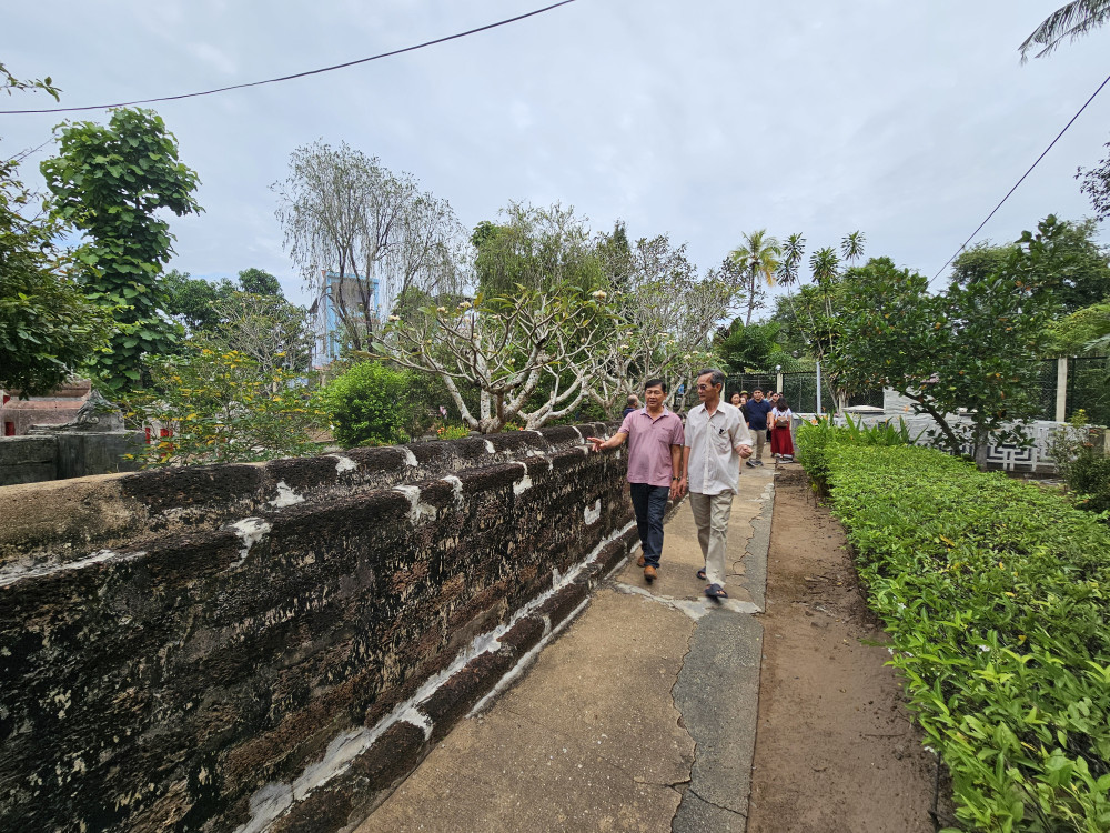 Tourists participating in the famtrip visit the Tomb and Temple of Duke Nguyen Huynh Duc