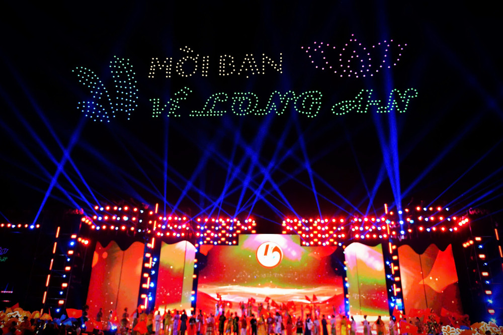 Drone show at the opening night of the 2nd Long An Province Culture - Sports - Tourism Week in 2024 attracted a large number of people (photo: Kien Dinh)
