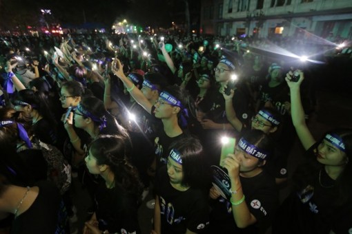 Young people take part in a ceremony responding to the Earth Hour campaign in Hanoi on March 30 evening (Photo: VNA)
