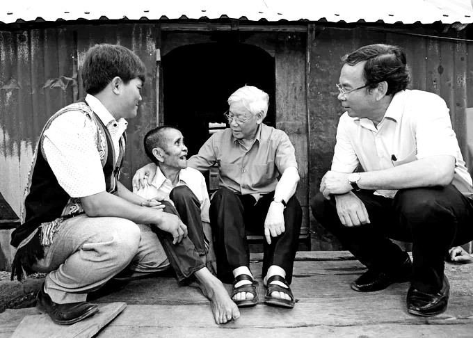 Comrade Nguyen Phu Trong's complete thought is the people, the human, the wholehearted devotion and service to the people, building human and taking the people as the subject and the centre of the renewal process. Regarding the Party, he affirmed “our Party must take the highest sense of responsibility to the people, take care of the material and spiritual lives of the people"; "the Party's policy that does not reflect the interests of the people, the country, and the nation, and is not consistent with the rule of historical evolution, is a wrong policy,” "close connection with the people is the rule of existence, development and operation of the Party, and the decisive factor creating the Party's strength.” Analysing the difference between the socialist rule-of-law state and the capitalist rule-of-law state, he clearly stated that "the socialist rule-of-law state is different from the capitalist rule-of-law state in terms of nature: the rule of law under the capitalist regime is actually a tool to protect and serve the interests of the bourgeoisie, while the rule of law under the socialist regime is a tool to express and exercise the people's right to mastery, ensure and protect the interests of the majority of the people". Regarding the socialist market economy, he held that a basic characteristic, an important attribute of the socialist orientation in the market economy in Vietnam is that the economy must be linked with society, economic policies must be unified with social policies, and economic growth must go hand in hand with the implementation of social progress and equality in every step, every policy and throughout the development process. Every economic policy must aim at social development goals, encouraging legal enrichment along with hunger eradication and poverty reduction, taking care of people with meritorious services and those who are in difficulty circumstances." Under the leadership of comrade Nguyen Phu Trong, our Party has issued resolutions on socio-economic development, ensuring national defence and security in six economic regions across the country until 2030, with a vision to 2045, set goals, visions, directions, and solutions to create strong and breakthrough development, contributing to successfully realising the country's goal of 100 years under the Party's leadership, 100 years of the Democratic Republic of Vietnam, now the Socialist Republic of Vietnam. By the middle of the 21st century, our country will become a developed nation, fulfilling President Ho Chi Minh’s desire of bringing our country to be on par with the powers on the five continents.