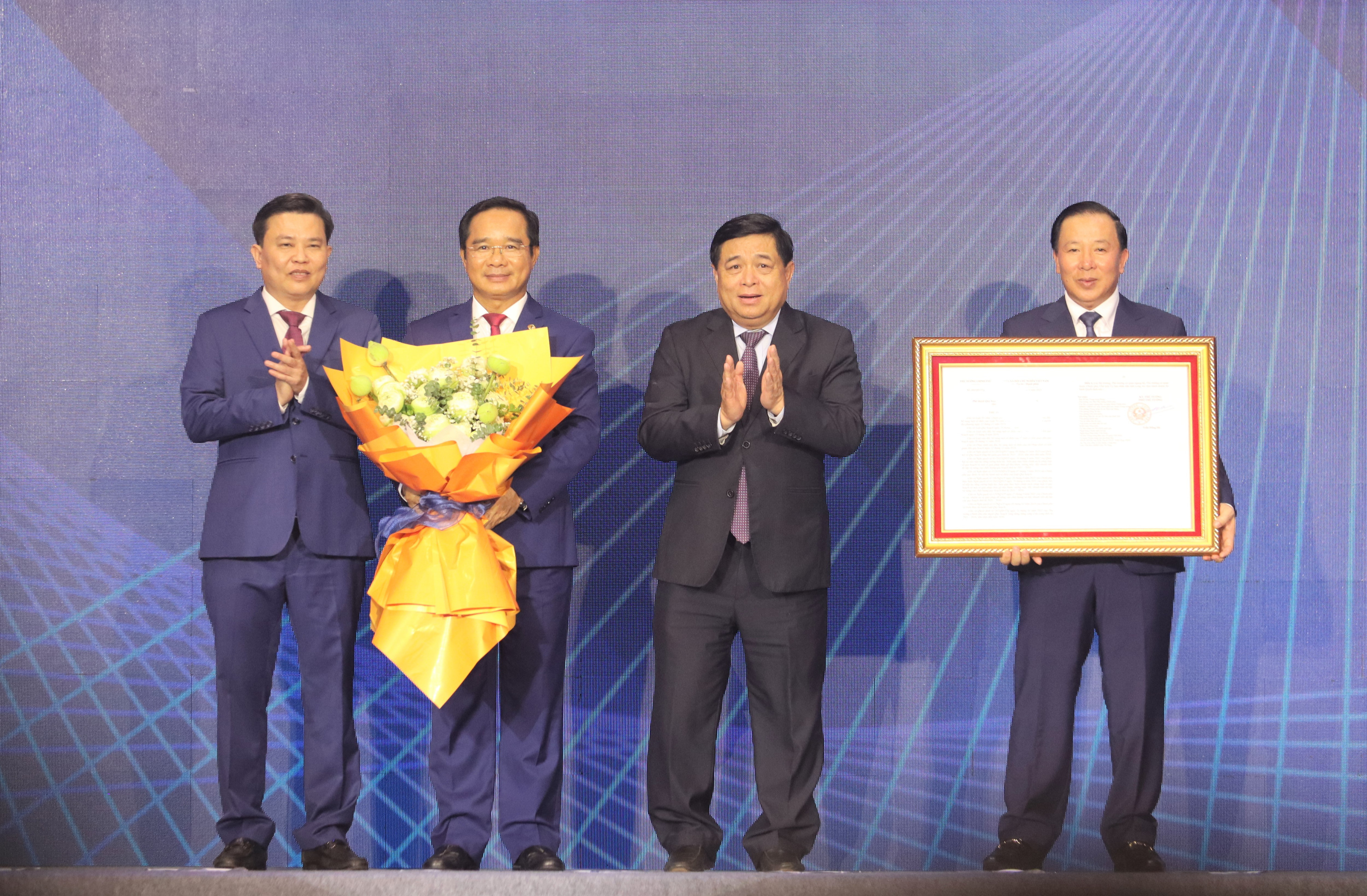 Minister of Planning and Investment - Nguyen Chi Dung hands over the Prime Minister's decision approving Provincial Master Plan to Long An leaders