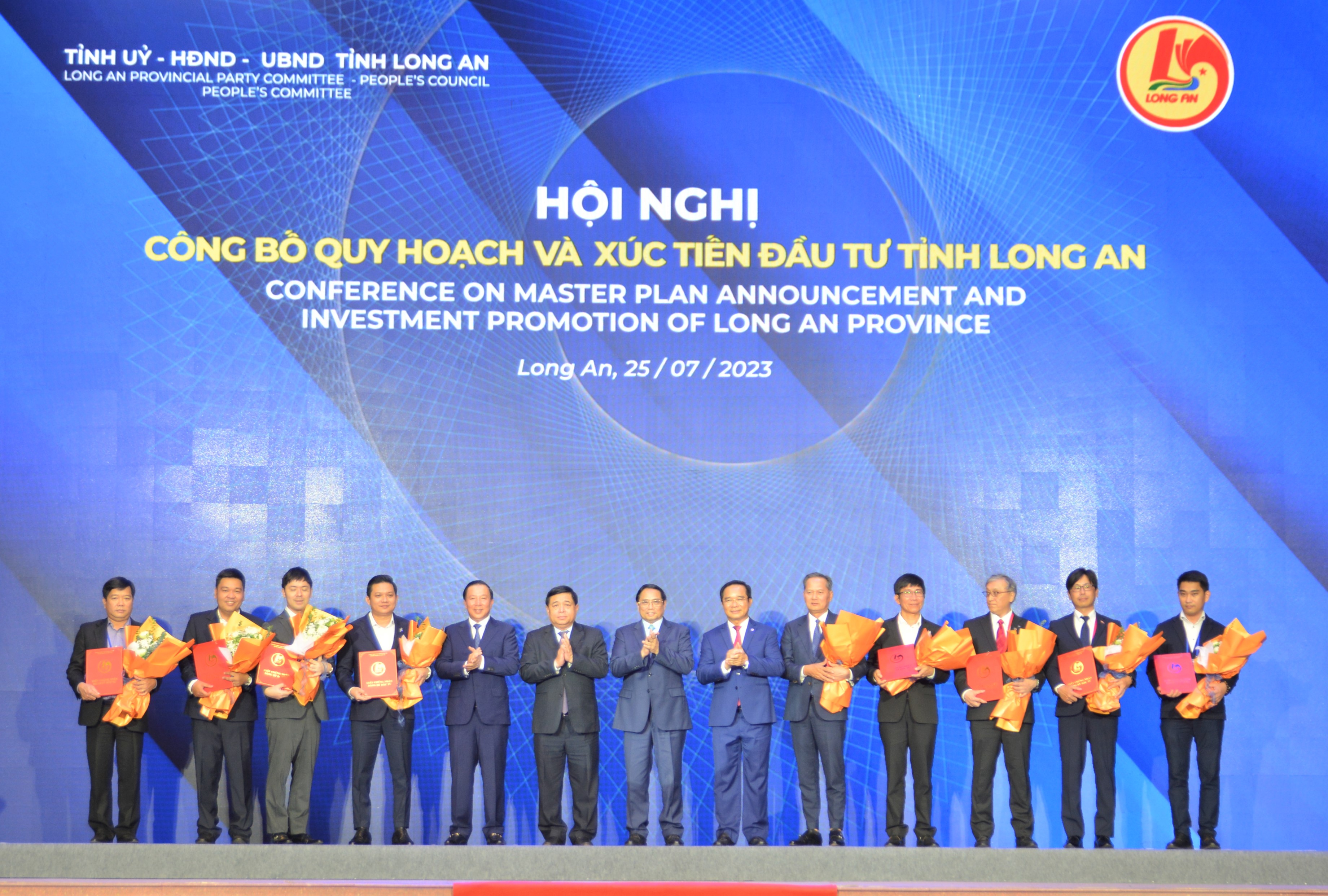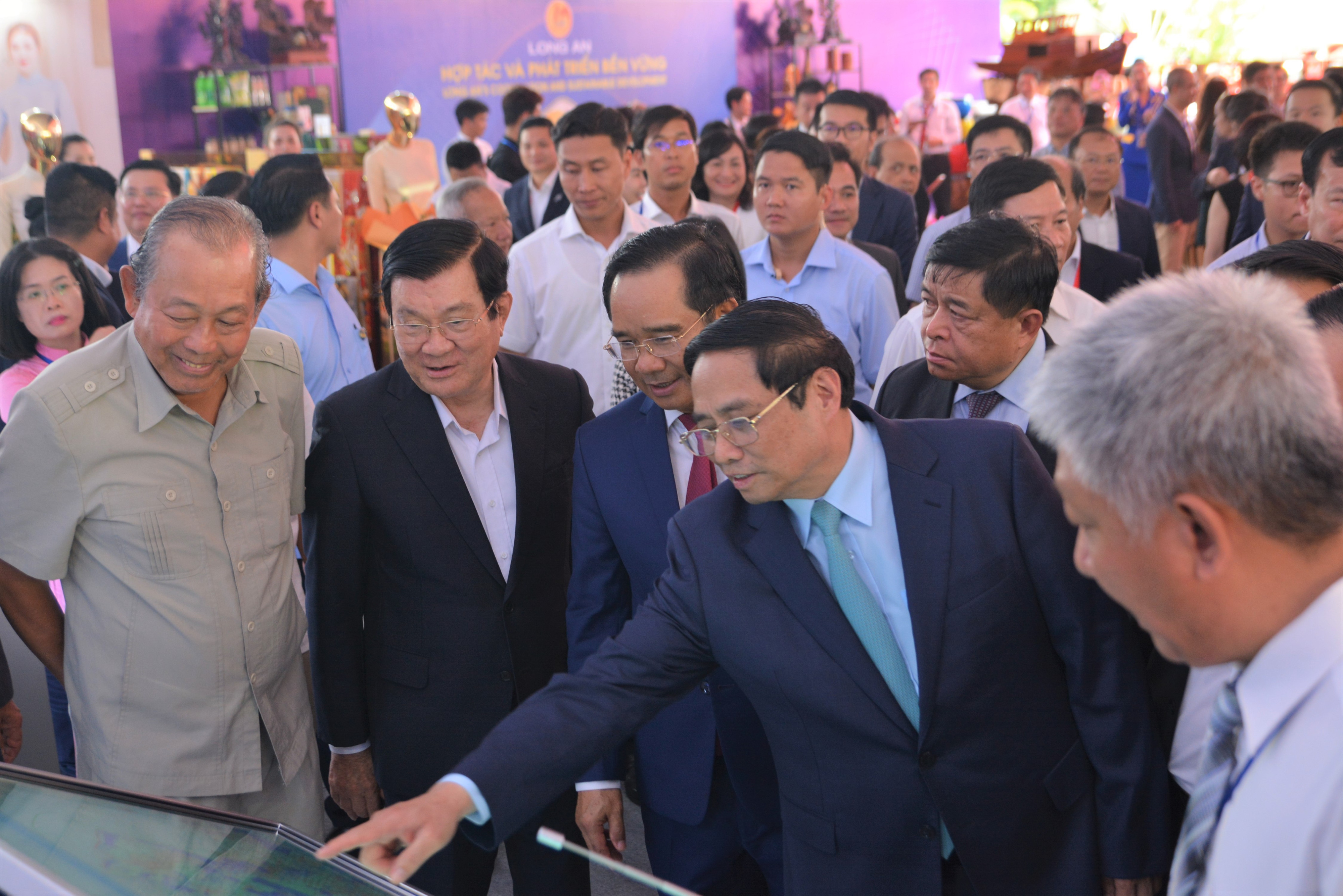 On July 25, Long An province held a conference to announce investment planning and promotion. Attending the conference were Politburo member, Prime Minister - Pham Minh Chinh; Former Politburo member, former President - Truong Tan Sang; Former Politburo member, former Permanent Deputy Prime Minister - Truong Hoa Binh; Minister of Planning and Investment - Nguyen Chi Dung; Minister of Transport - Nguyen Van Thang; Minister of Natural Resources and Environment - Dang Quoc Khanh; Chairman of the National Assembly's Committee for Defense and Security - Le Tan Toi; leaders of ministries, central agencies, provinces and cities.