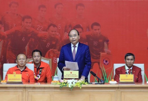 Prime Minister Nguyen Xuan Phuc lavished praise on the men's and women’s football teams after their resounding success in the finals of the SEA Games against Indonesia and Thailand at the Government Office on December 11.