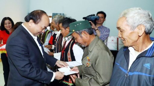 Prime Minister Nguyen Xuan Phuc visited and presented 200 gifts to the poor and policy beneficiaries in Dak Song district, the Central Highlands province of Dak Nong on February 9 ahead of the upcoming traditional Lunar New Year (Tet) festival.