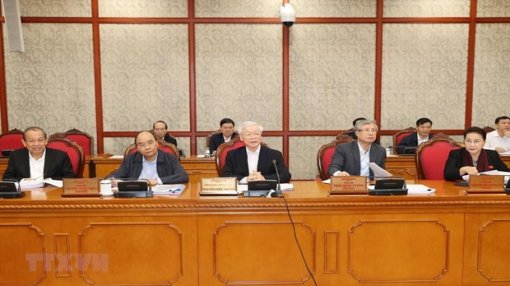 Party General Secretary Nguyen Phu Trong (centre) addresses the Politburo meeting (Photo: VNA)