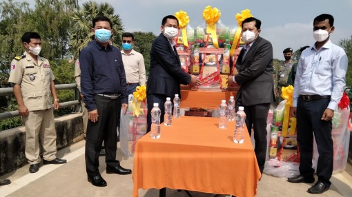 On January 26, at Huu Nghi 2 bridge, Cay Me hamlet, Hung Dien commune, Tan Hung district, Long An province. The delegation of PrayVeng province, Kingdom of Cambodia visited, gave gifts and wished the leaders of Long An province on the occasion of the New Year of the Tiger 2022.