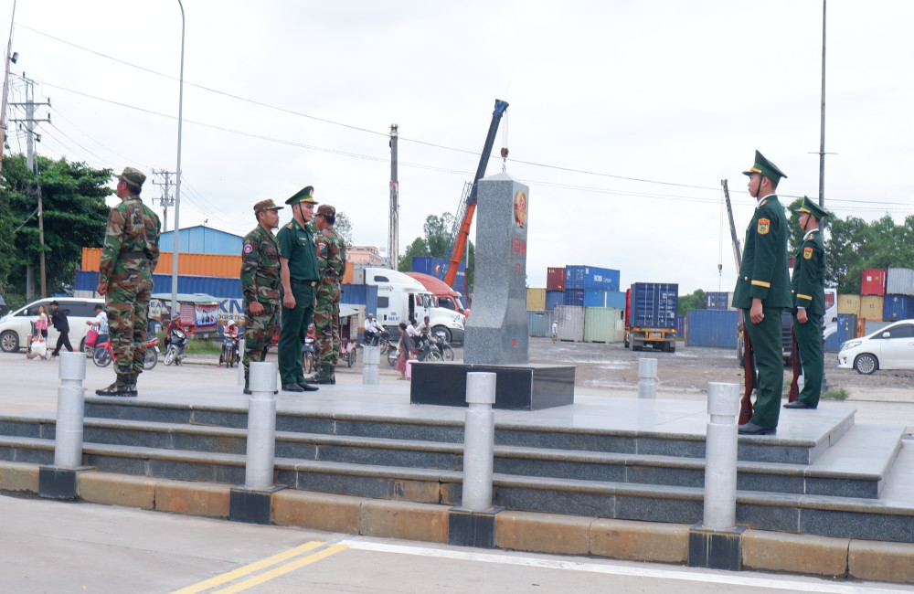 In addition, the Border Guard force of Tay Ninh province and the Cambodian border guard force have been actively practicing the ceremonies to welcome and see off the high-ranking leaders of the two countries' Ministries of National Defense, the salute ceremony, painting the sovereignty marker, planting friendship trees, and joint patrols between the border guards of the two countries at the Moc Bai International Border Gate landmark area.