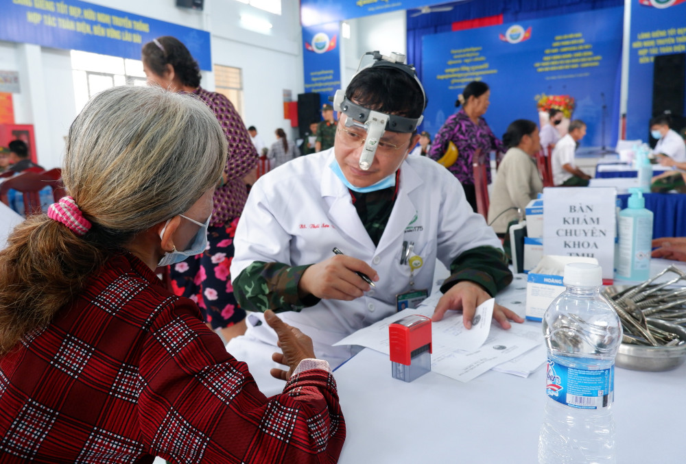 Vietnamese and Cambodian military medical forces coordinate to organize medical examinations and provide free medicine for Long Thuan commune residents