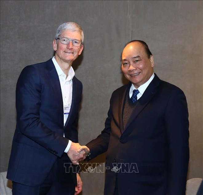 Prime Minister Nguyen Xuan Phuc (R) meets with CEO of Apple Tim Cook (Photo: VNA)