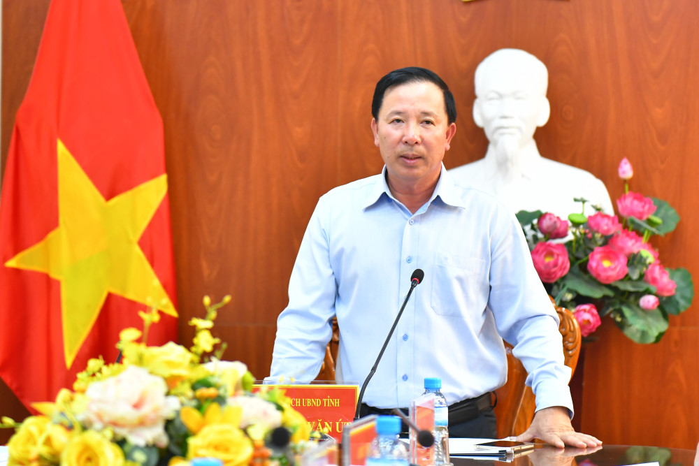 Deputy Secretary of the Provincial Party Committee, Chairman of the Provincial People's Committee Nguyen Van Ut, speaks at the meeting