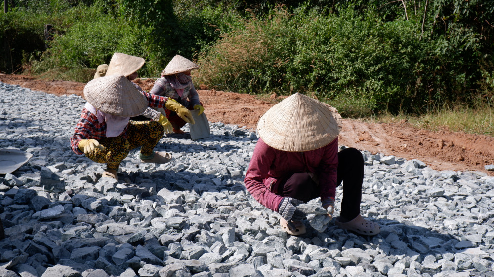 Workers constructing a road in the province