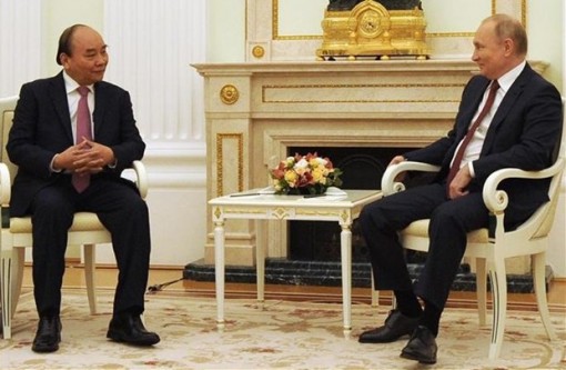 Vietnamese President Nguyen Xuan Phuc (left) and his Russian counterpart Vladimir Putin. (Photo: VNA)