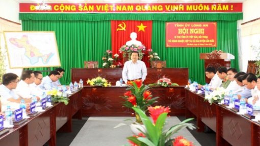 Secretary of Long An Provincial Party Committee talks with businesses and cooperatives in Can Duoc
