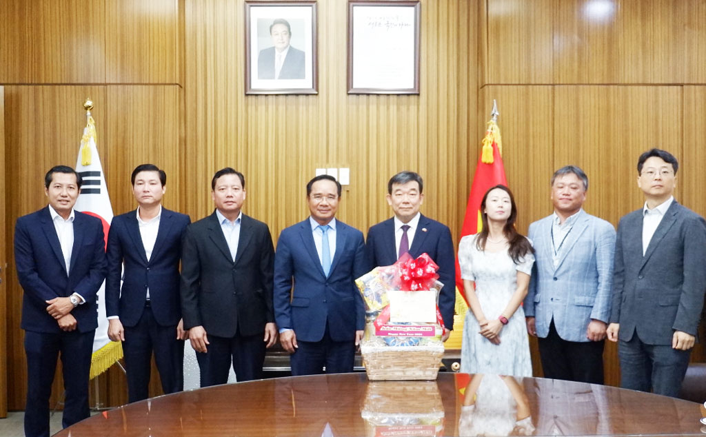 Also this afternoon, the delegation visited and gave new year greetings to the Korean Consulate General in Ho Chi Minh City. Secretary of Long An Provincial Party Committee - Nguyen Van Duoc and Korean Consul General - Shin Choong Il discussed the situation of cooperation between the two sides and agreed to strengthen cooperative activities in the coming time.