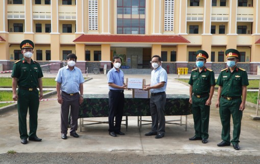 Here, Secretary of the Provincial Party Committee, Chairman of the Provincial People's Council, Head of the Steering Committee for Covid-19 Prevention and Control of Long An Province - Nguyen Van Duoc received a gift from Senior Lieutenant General Vo Minh Luong - Deputy Minister of National Defense to Long An, including 6,000 bags of medicine to support the treatment for Covid-19 patients, with a total value of 500 million VND.