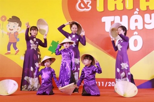 Teachers and children with autism join a performance in a festival for children with autism in HCM City (Photo: VNA)