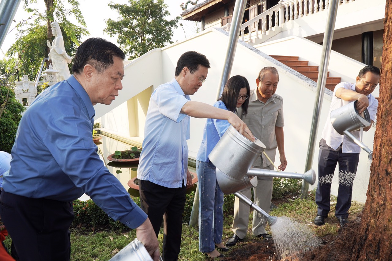Standing member of Secretariat of Party Central Committee - Vo Van Thuong and Head of Central Propaganda Department - Nguyen Trong Nghia plant souvenir tree at the Truong Van Bang Memorial Park