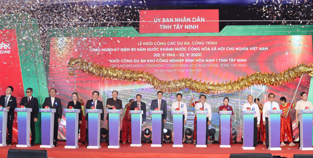 The attractiveness of the investment environment in Tay Ninh is affirmed with many large projects being continuously started and inaugurated. On August 19, 2025, two trillion-dollar projects were started: Phuoc Vinh Tay New Urban Area Project in Phuoc Vinh Tay Commune, nearly 1,100 hectares, with a capital of more than 80,000 billion VND invested by Vingroup; Binh Hoa Nam 1 Industrial Park Infrastructure Investment and Business Project in Duc Hue Commune with a scale of more than 322 hectares, a total investment of 3,900 billion VND, invested by Hoan Cau Long An Company Limited. Previously, the province started the Thu Thua Industrial Park Infrastructure Investment Project in Thu Thua commune with a capital of nearly 3,000 billion VND. On July 31, 2025, the Provincial People's Committee approved the investment policy and investment registration certificate for the Xuyen A Industrial Park Investment Project Phase 3, with a scale of more than 177 hectares and a total investment capital of more than 3,500 billion VND.