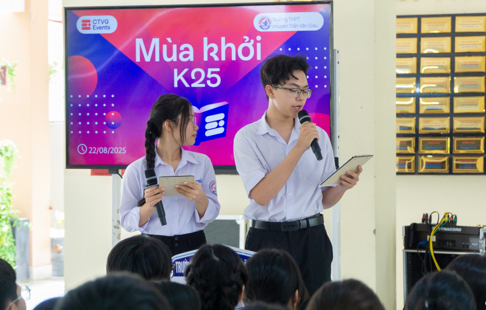 Students of Tran Van Giau High School for the Gifted (Long An ward) participate in activities at the beginning of the school year