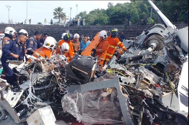 Ten people have died after two navy helicopters collided in mid-air during a military rehearsal for a Royal Malaysian Navy parade.