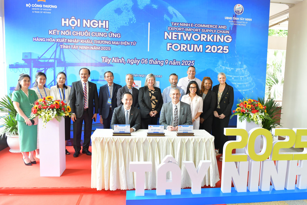 8 memorandums of understanding between the Tay Ninh Department of Industry and Trade, Latvia Chamber of Commerce and Industry, Central Retail Group, Alibaba Group; Tay Ninh Provincial Business Association and Vietnam Garment Export Company with Lulu Group, Vietnam Business Association in Japan, Indian Business Association in Vietnam; Long An International Port and Portland Port of the United States, Gothenburg Port of Sweden were signed at the event to promote investment in connecting the supply chain of import-export goods and e-commerce in 2025