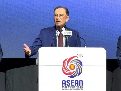 Malaysian Prime Minister Anwar Ibrahim speaks at the May 27 press conference announcing the outcomes of the 46th ASEAN Summit