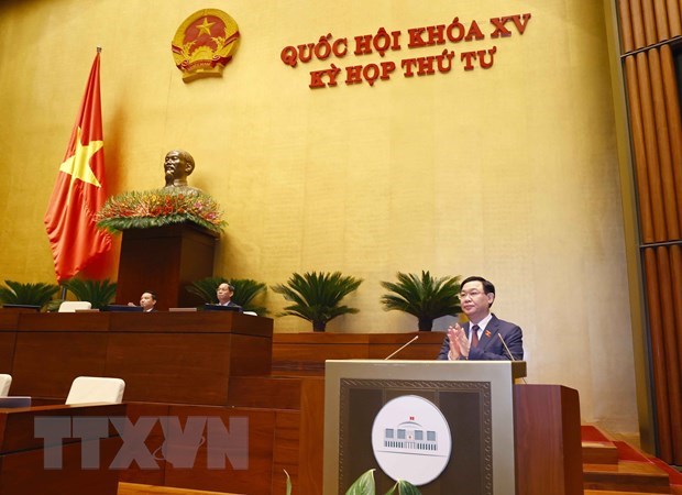 NA Chairman Vuong Dinh Hue speaks at 15th legislature's fourth session (Photo: VNA)