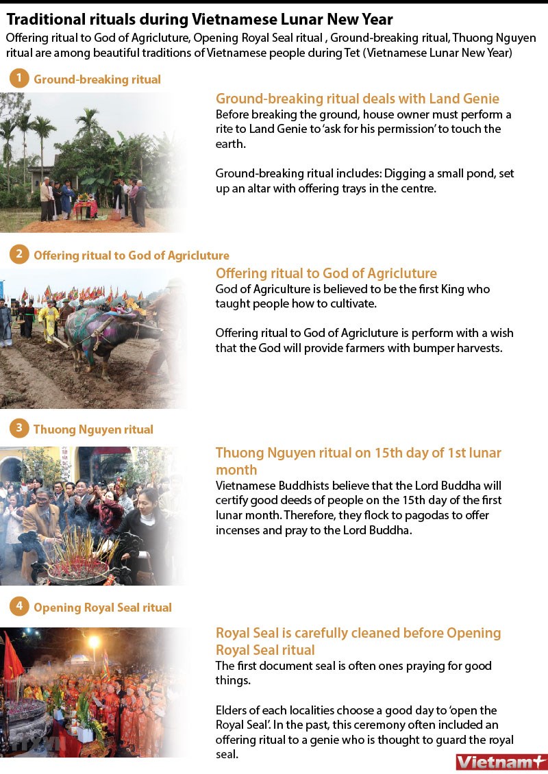 Offering ritual to God of Agriculture, Opening Royal Seal ritual, Ground-breaking ritual, Thuong Nguyen ritual are among beautiful traditions of Vietnamese people during Tet (Vietnamese Lunar New Year).
