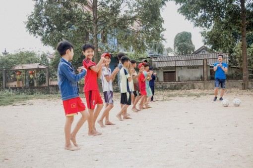 Children in Hue warm-up for football training. Photo Blue Dragon