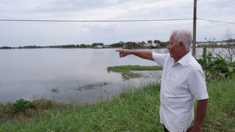 The incident happened more than a month ago, but Mr. Pham Van Thanh and many households living in the dyke area of Canal 3 in Ca Na Hamlet, Tuyen Binh Commune, are still worried about the broken dyke rushing water in and submerging about 100 hectares of rice ready to be harvested.