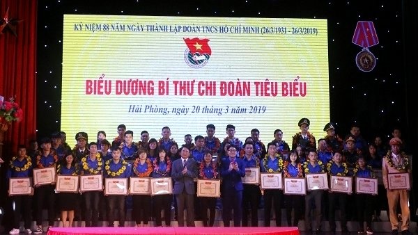 Outstanding secretaries of Hai Phong’s Youth Unions at all levels honoured at a ceremony held in the northern port city on March 20. (Photo: thanhdoanhaiphong.gov.vn)