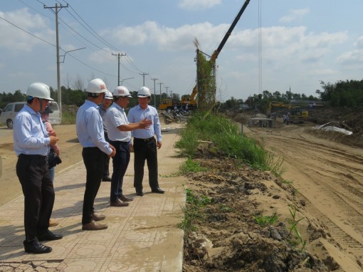 Vice Chairman of Long An People's Committee - Nguyen Van Ut (R) checks the project at the site