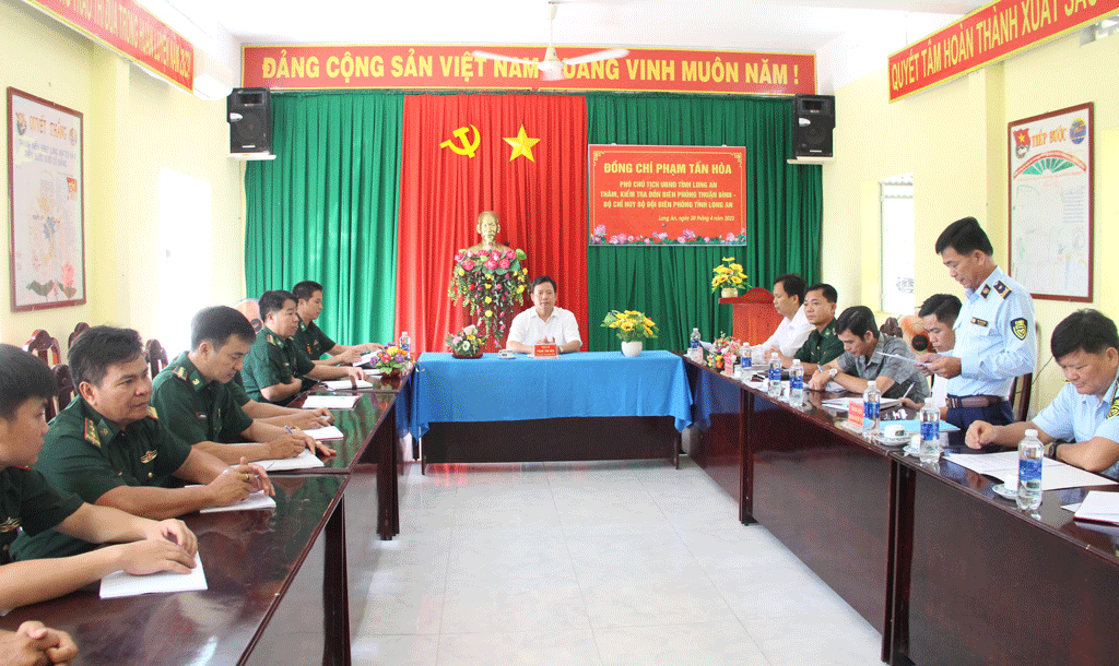 Thuan Binh Border Guard Station currently located in hamlet 61, Thuan Binh commune, Thanh Hoa district, is tasked with managing and protecting the 8,9km-long border section, including 12 landmarks (5 main landmarks and 7 auxiliary landmarks) from the point adjacent to the administrative boundary of 2 communes Thuan Binh and Binh Hoa Hung, Duc Hue district to the point contiguous to the administrative boundary of 2 communes Tan Hiep and Binh Thanh commune, Moc Hoa district.