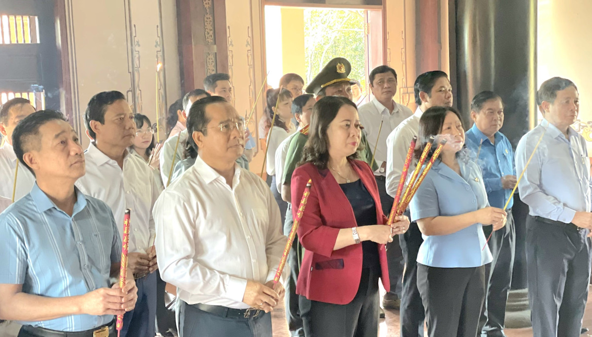 Vice State President - Vo Thi Anh Xuan and the delegation offered incense at the memorial site of the late Acting State President, Lawyer Nguyen Huu Tho in Ben Luc district.
