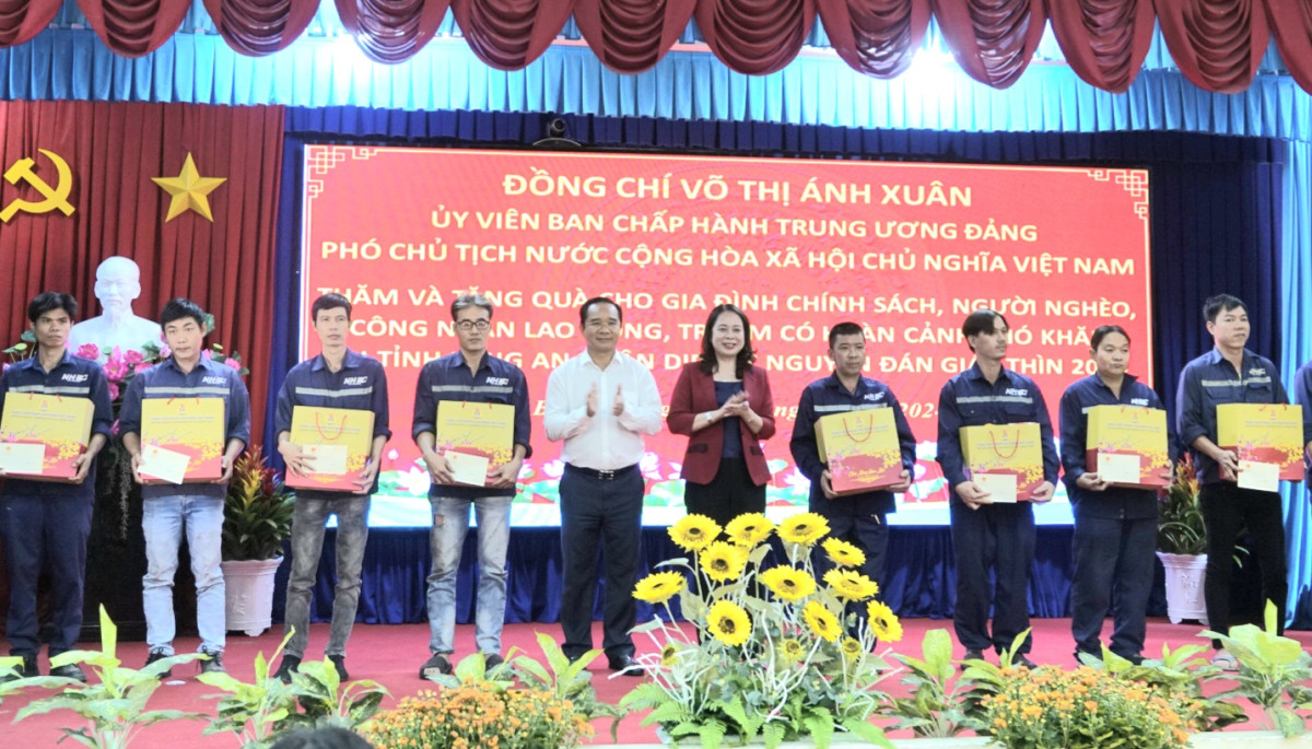 Speaking at the ceremony, Vice State President - Vo Thi Anh Xuan kindly shared the difficulties and encouraged policy families, trade union members, workers, people and children. At the same time, she wishes them a warm, healthy and happy New Year.