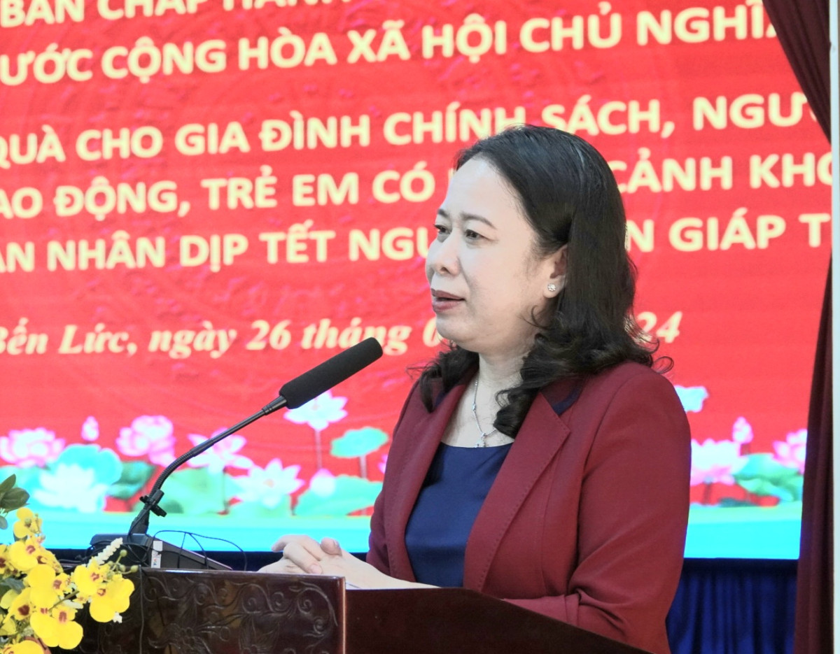 Vice State President - Vo Thi Anh Xuan also recognized and praised Long An province's efforts to implement social security activities, especially during the Lunar New Year of Dragon 2024.