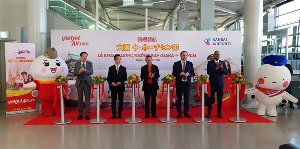 Delegates cut the ribbon to launch Vietjet's new route connecting HCM City and Osaka