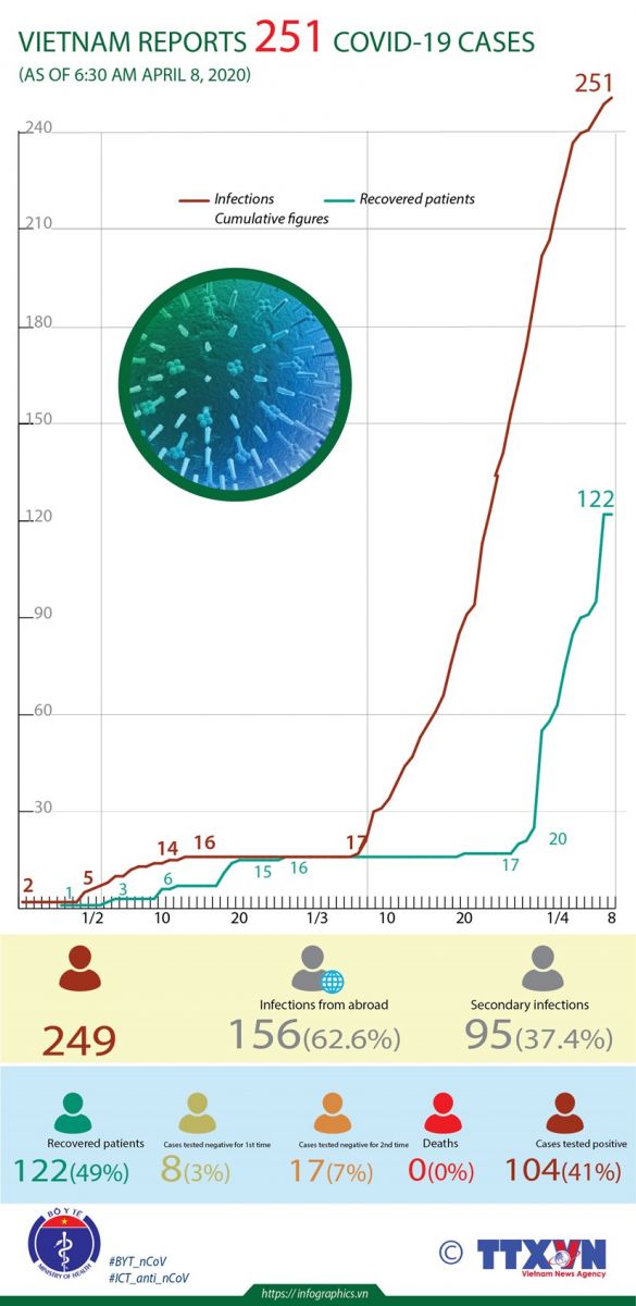 As of 6:30 am on April 8, Vietnam has reported 251 Covid-19 cases.