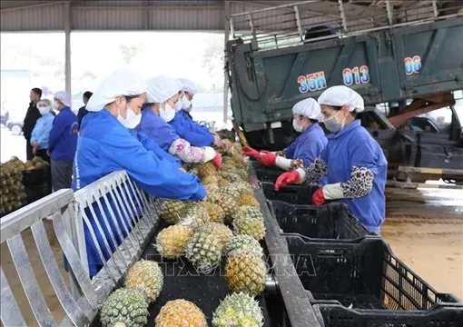 Workers process pineapples for export at a factory in the northern province of Ninh Binh. (Photo: VNA)