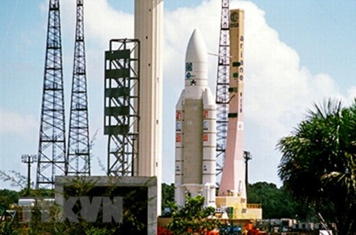 Ariane 5 rocket with Vinasat-2 on board on its way to the launch pad in Guiana Space Centre in 2013 (Photo: VNA)