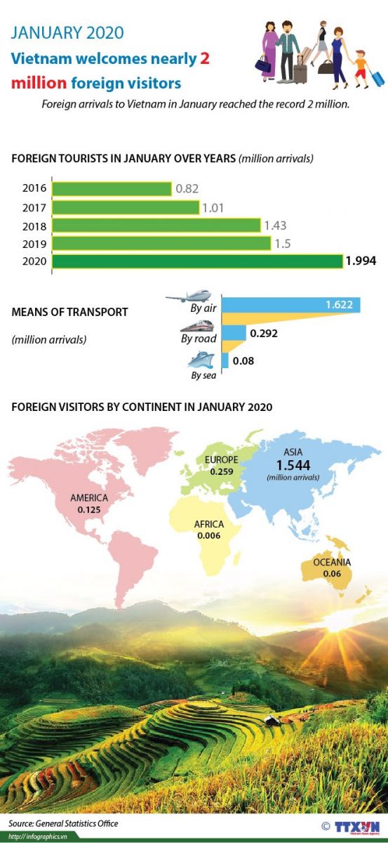 Vietnam welcomes nearly 2 million foreign visitors