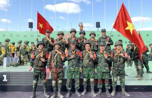 On the same day, with an overall time of 1:21:25 and bringing down 11 out of 15 targets, the Vietnamese tank crew teams ranked ninth out of 11 squads competing at the “Tank Biathlon” category.