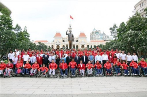 Vietnam’s national flag was hoisted together with those of 10 other Southeast Asian countries at Manahan Stadium in Surakarta, Central Java, Indonesia on July 27, marking the official presence of the Vietnamese sports delegation to the 11th ASEAN Para Games.