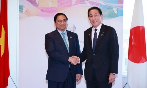 Chinh congratulated Kishida and host Japan on successfully organizing the G7 and G7 expanded Summits and spoke highly of Japan's coordinating role to reach a consensus in solving global challenges such as food security and emission reduction.