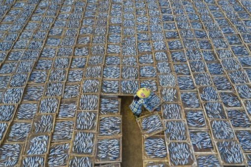 The photo, entitled Drying Fish, was taken in Long Hai market in the central province of Ba Ria-Vung Tau on July 26, 2020. The wooden trays viewed from above look like a giant brocade woven by the farmer.