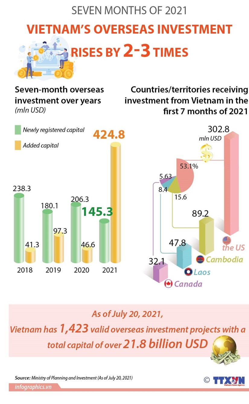Vietnam's overseas investment rose by 2-3 times in the first seven months of this year, according to the Ministry of Planning and Investment.