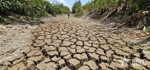 The Suon canal running through Tan Tap commune, Can Giuoc district, Long An province dries up due to prolonged drought and salinity, 2024